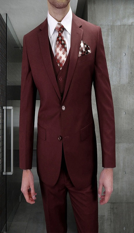 • 3pc Single Breasted Two Button Suit With Vest And Flat Front Pants