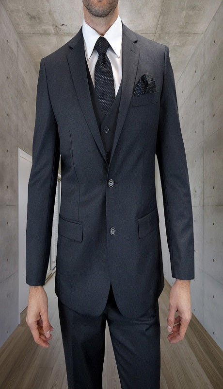 • 3pc Single Breasted Two Button Suit With Vest And Flat Front Pants