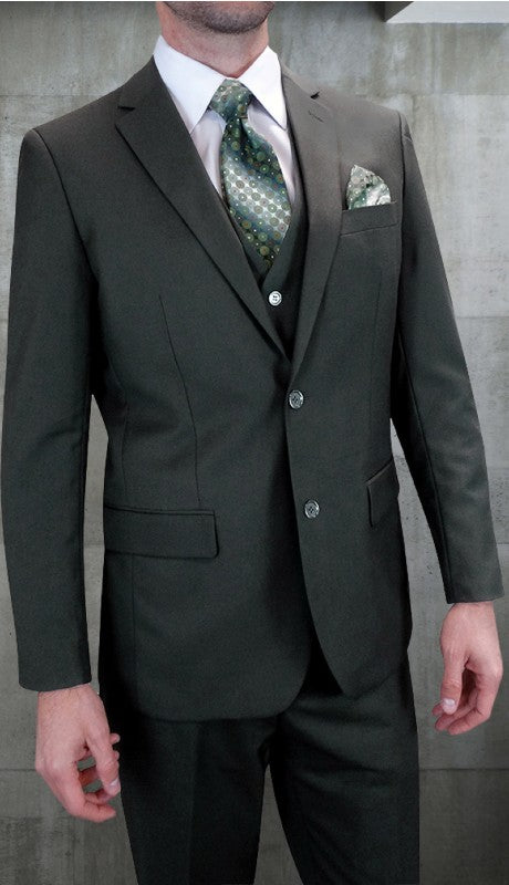 • 3pc Single Breasted Two Button Suit With Vest And Flat Front Pants