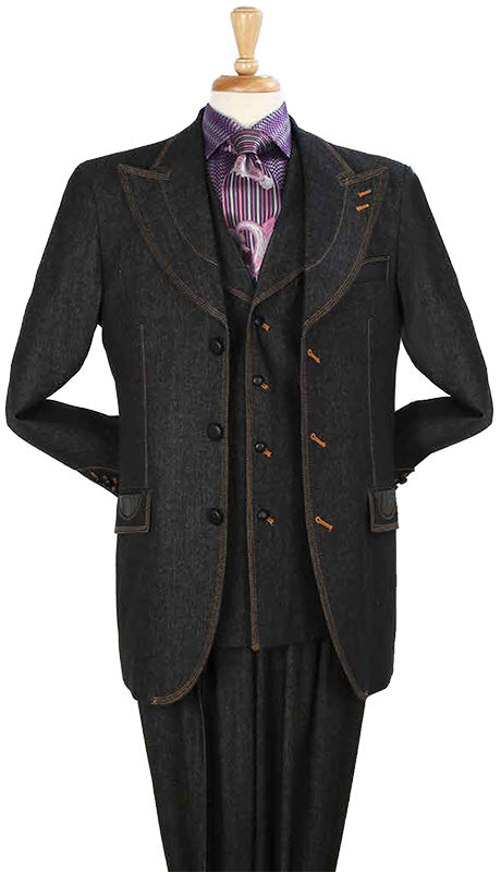 • 3pc Denim Suit Includes Vest, Jacket, Pants