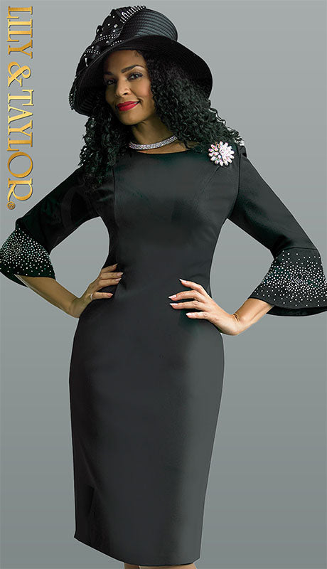 • 1pc Scuba Knit Dress For With Embellished Rhinestone Sleeves And Brooch