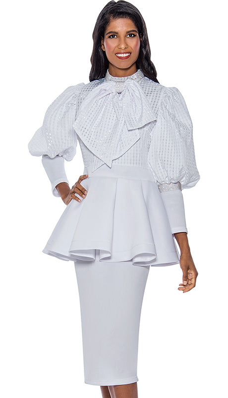 2pc Scuba Knit Womens Suit With Large Peplum And Puff Sleeves