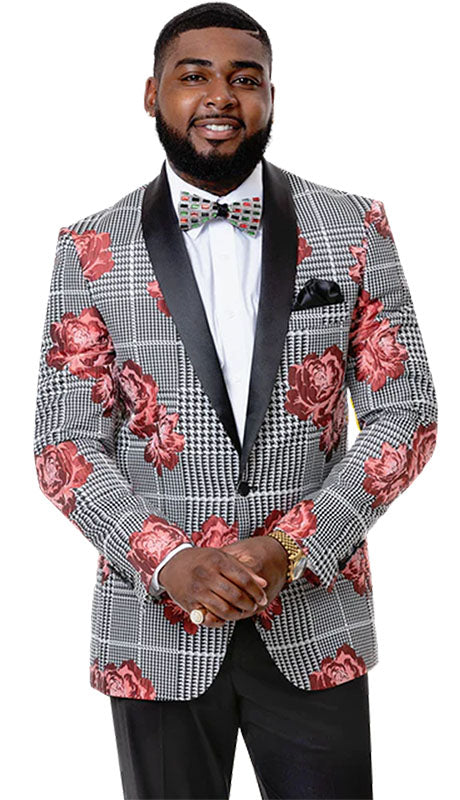 • Black with White Hountstooth Design with Red Flowers