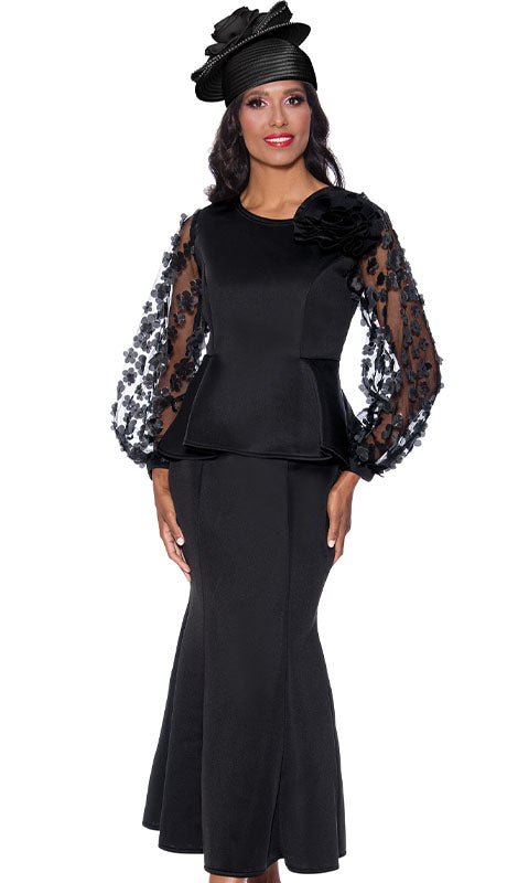 • 2pc Scuba Knit Womens Suit With 3D Brooch