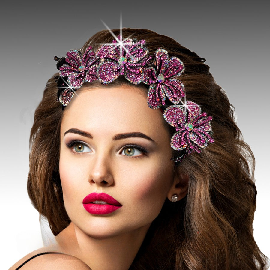 • Crystal Encrusted Flowers Frame A Headband to Create A Simply Elegant and Eye Catching Headpiece