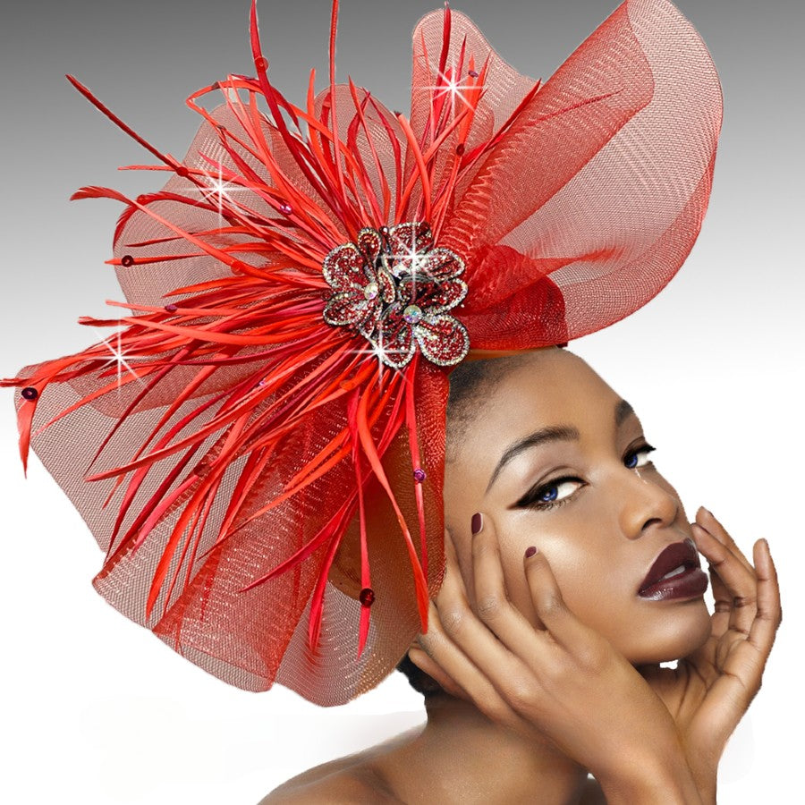• Fascinator is a Beautifully Crafted Illusion Fan Nesting a burst of Feathers And Crystal Encrusted Flowers