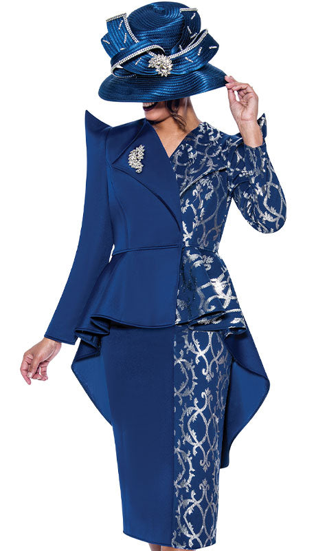 • 2pc Scuba Knit With Brocade Womens Suit With Asymmetrical Pattern