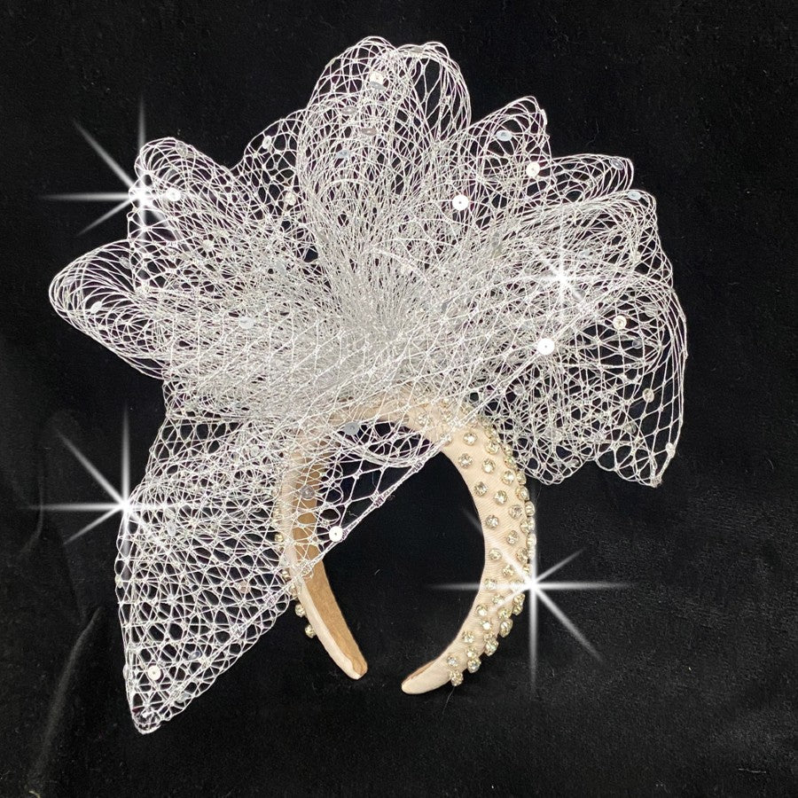 • A Delicate Veil Cascades Gracefully from the Side of the Headband