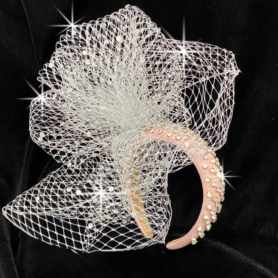 • A Delicate Veil Cascades Gracefully from the Side of the Headband