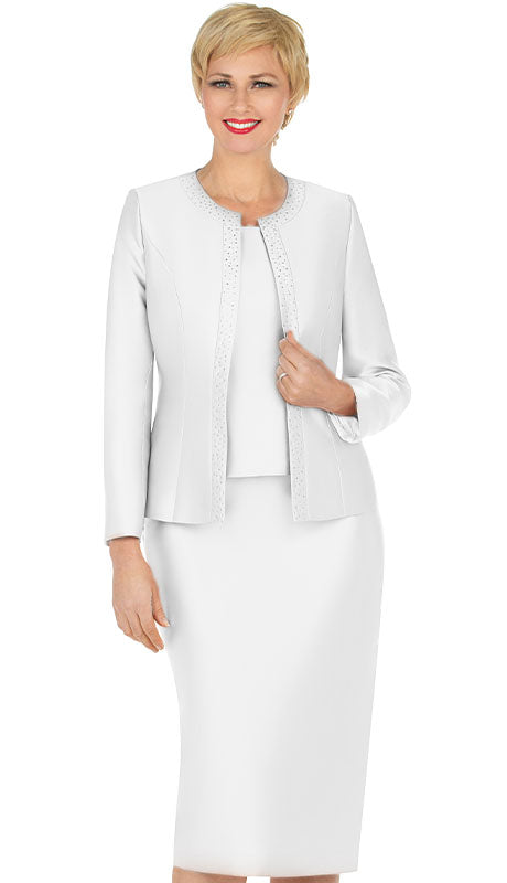 3pc Silk Look Womens Suit With Rhinestone Trim
