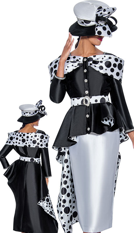 • 2pc Silk Look Womens Suit With Polka Dot Trim