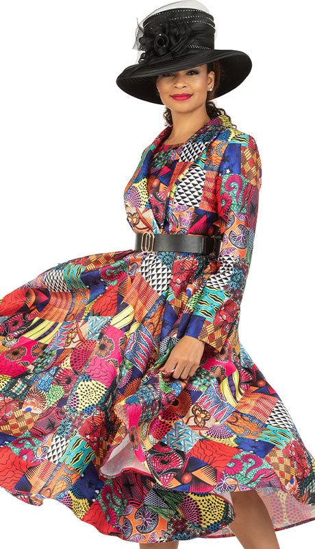 • 1pc Silk Look Womens Dress With Multicolored Print