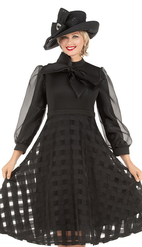• 1pc Scuba Knit And Organza Ladies Dress With Grid Cut Out Designs