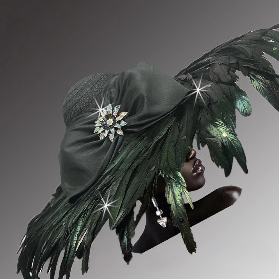 • Luxurious Ocean of Feathers is a Large Bow, Positioned Elegantly at the Base of the Crown