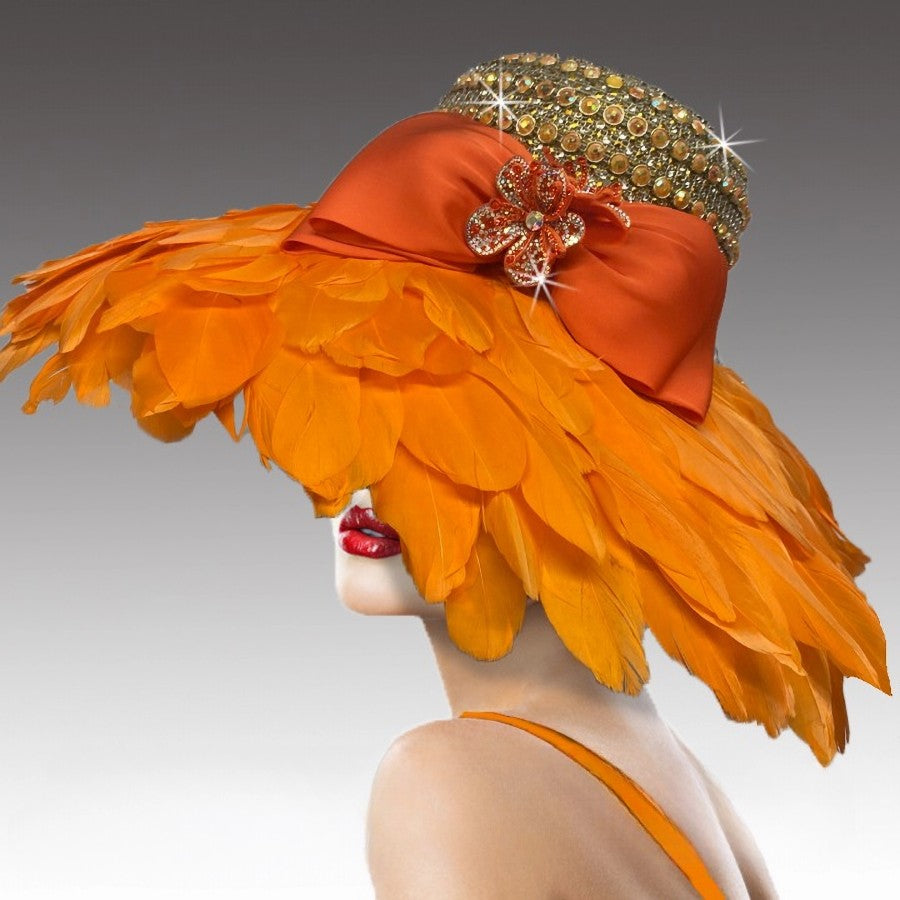 • Hat Features An Intricately Hand Jeweled Crown And A Generous Brim Blanketed In Vibrantly Hued Feathers