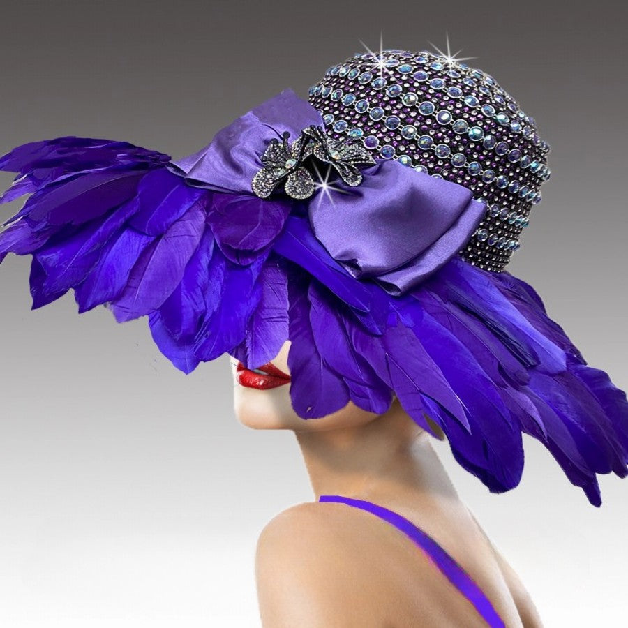 • Hat Features An Intricately Hand Jeweled Crown And A Generous Brim Blanketed In Vibrantly Hued Feathers