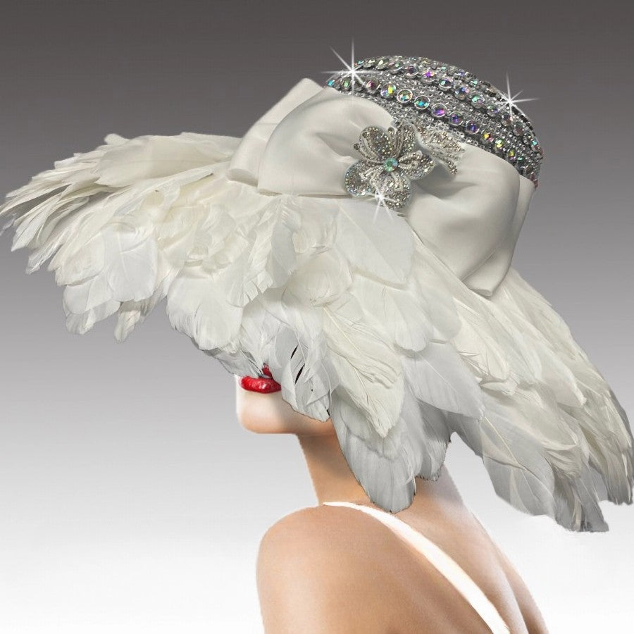 • Hat Features An Intricately Hand Jeweled Crown And A Generous Brim Blanketed In Vibrantly Hued Feathers