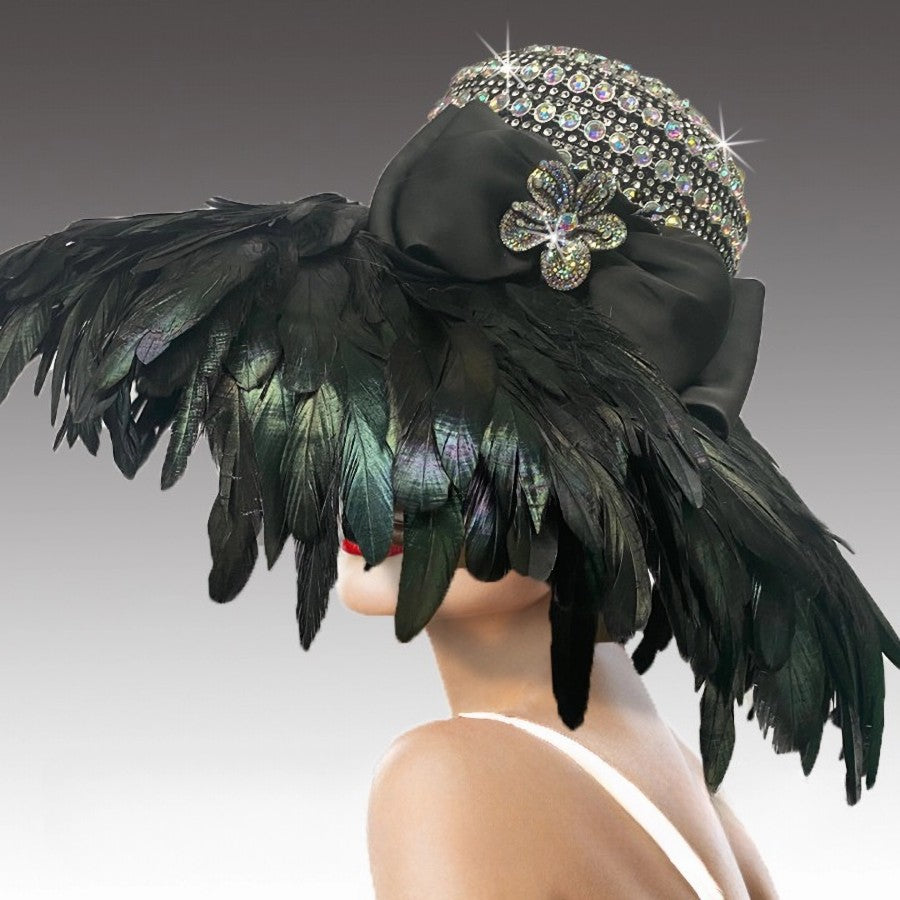• Hat Features An Intricately Hand Jeweled Crown And A Generous Brim Blanketed In Vibrantly Hued Feathers
