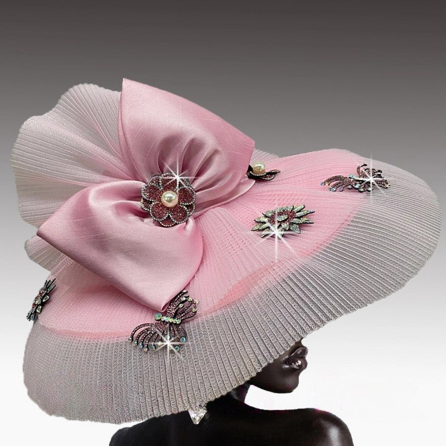 • The Hat's Brim Adorn With a Pleated Illusion Overlay, Which is Punctuated With a Managerie of Crystal Flowers And Butterflies