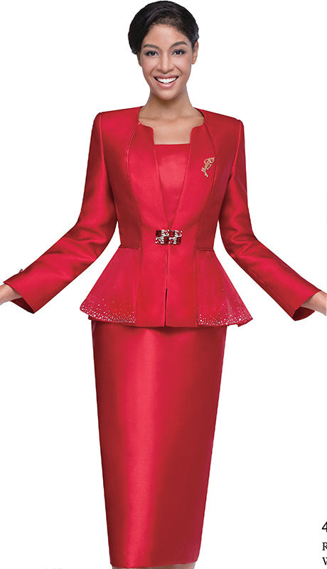 • 2pc Silk Womens Suit With Rhinestone Brooch And Clasp