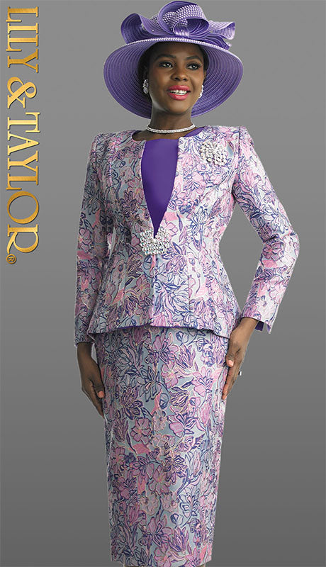 • 3pc Brocade Suit With Rhinestone Brooch and Clasp