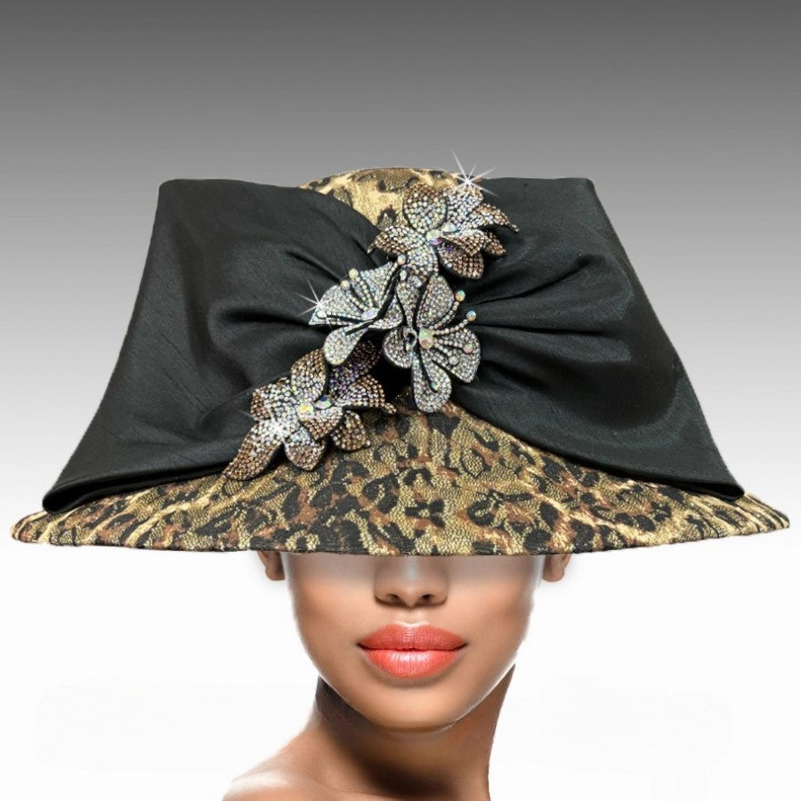 • Hat is Classsically Proportioned Round Crown Cloche, Brim is Enveloped in a Luxurious Leopard-Printed Fabric With a Touch of Bold Wilderness