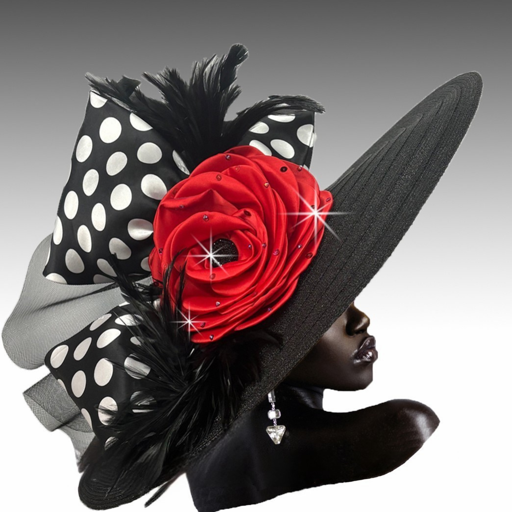 • The Hat is Adorned With Polka Dot Bows, Cascading Feathers Add Height And Drama