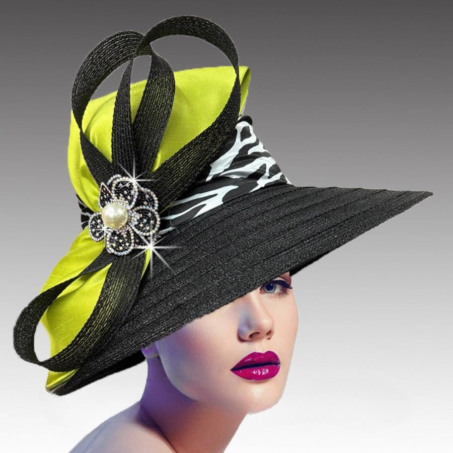 • Round Crown Cloche Striking Fusion of Elegance And Playfulness and A Crownf Expertly Draped in Bold Zebra-Printed Fabric