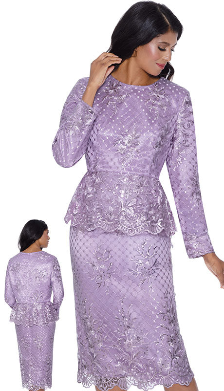 • 2pc High Quality Women's Suit With Lace Skirt Sporting Gorgeous Textured Floral Pattern