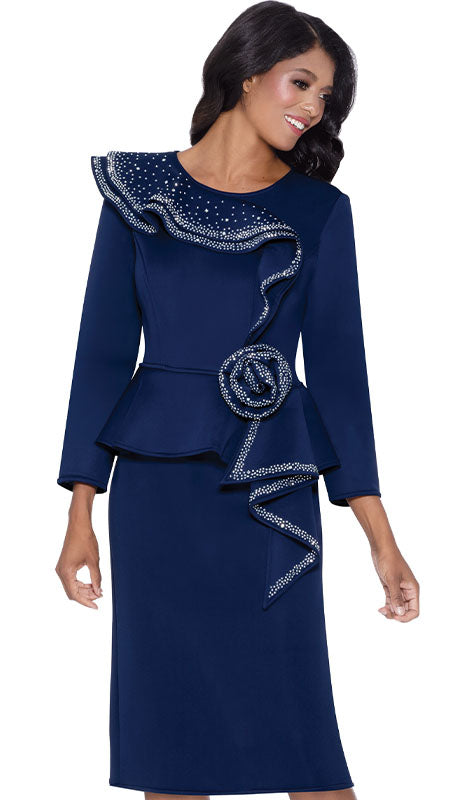 • 2pc High Quality Scuba Women's Dress With Elegant Perfected Rose Adornment From Shoulder to Waist Ruffle Trimmed With Rhinestone Highlights