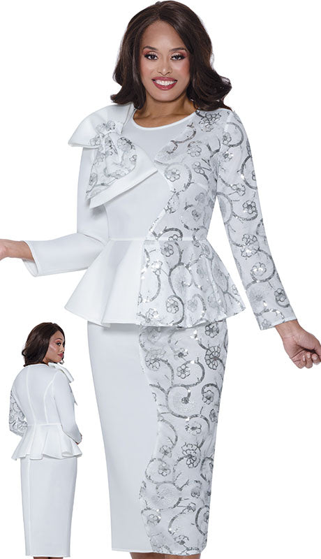 • 2pc High Quality Scuba Jacket And Skirt Set With Unique Matching Shoulder Bow Embellishment