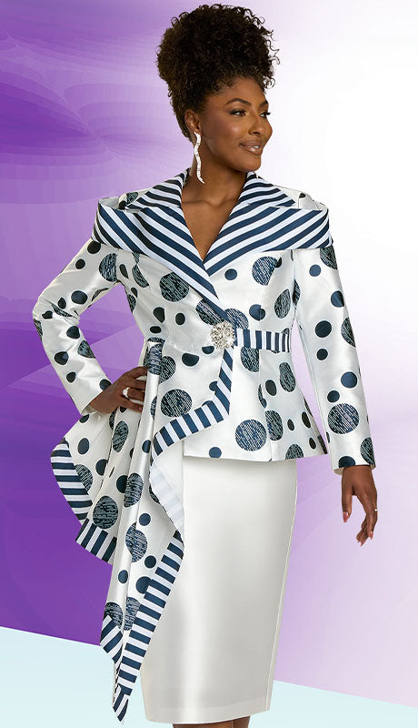 • 2pc Exclusive Silk Suit With Polka Dot And Stripe Design