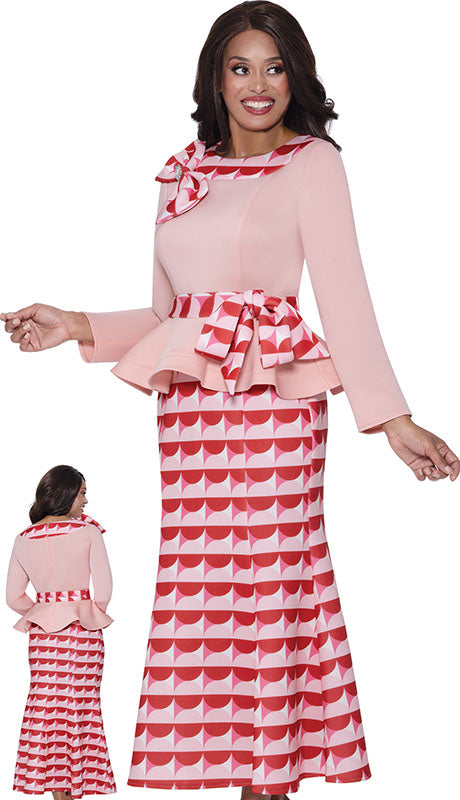 • 2pc High Quality Jacket and Printed Midi Skirt With Matching Shoulder Bow and Belt Tie Accessories