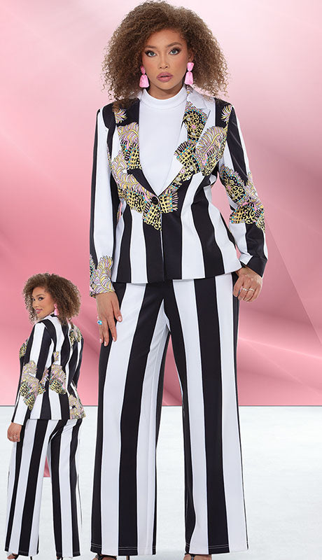 • 3pc Exclusive Peachskin Pant Suit With Striped Pattern