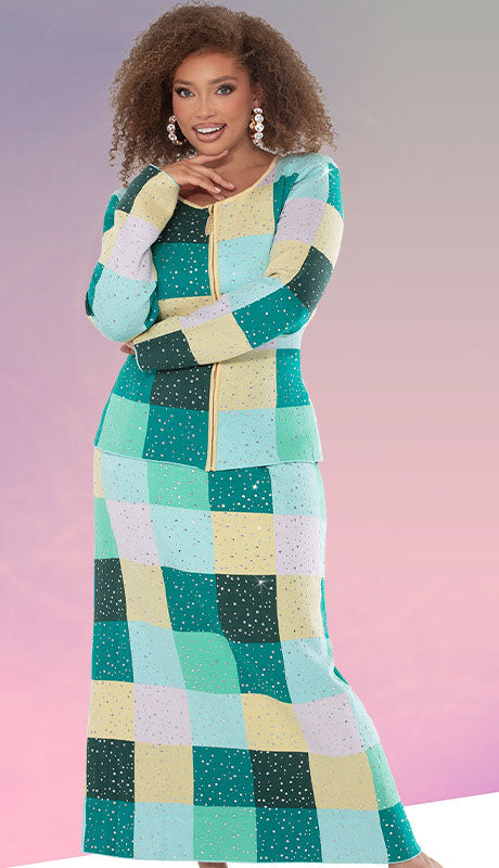 • 2pc Exclusive Knit Womens Dress With Checkered Quilt Design