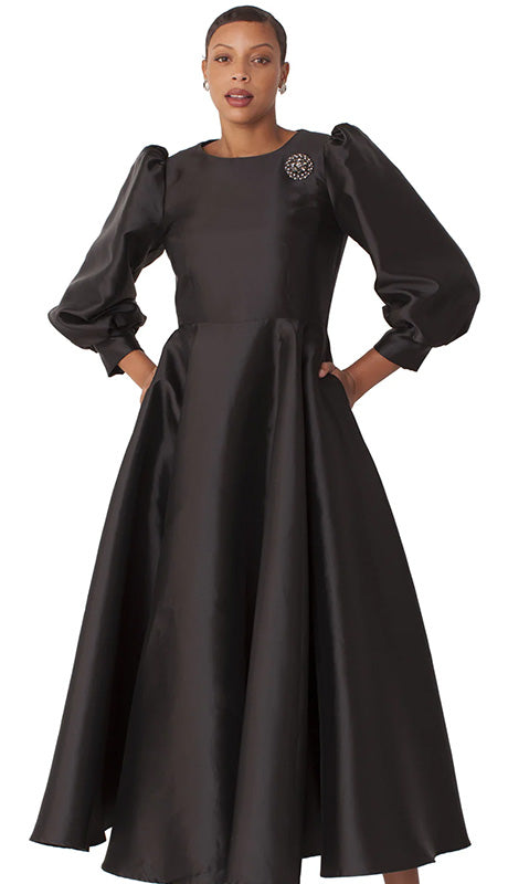 • 1pc High Quality Stunning Solid Color Dress With Bishop Sleeves And Eye Catching Rhinestone Brooch