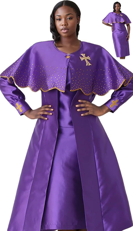• 3pc Clergy Silky Attire Robe Set Adorned With Rhinestone Studs