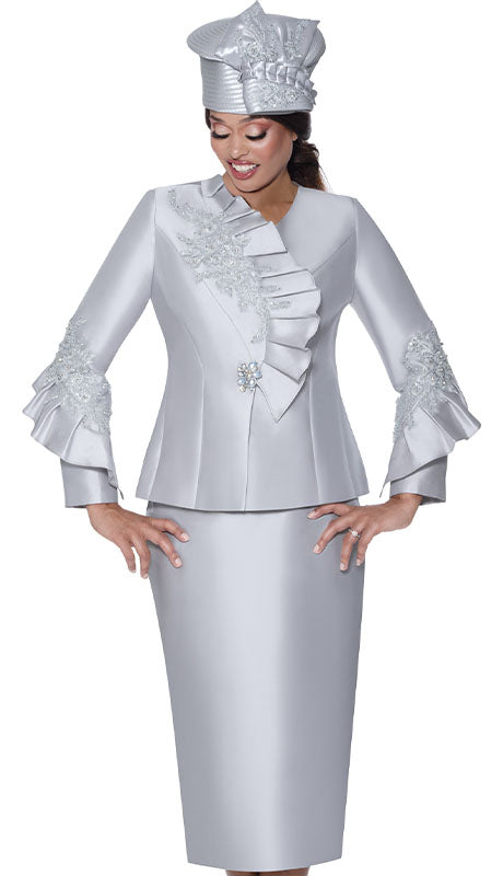 • 2pc Silk Look Womens Suit With Pleated Fan Design