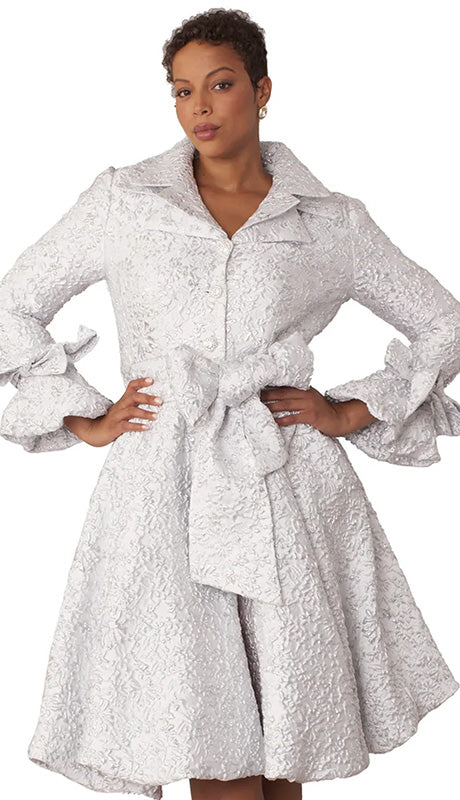 • 1pc Luxurious Jacquard Fabric Coat Dress With Bell Sleeves And Decorative Button