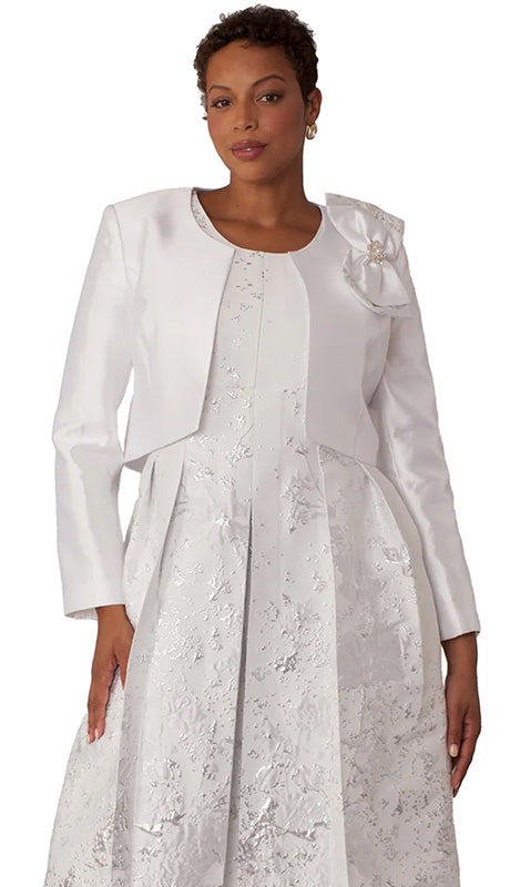 • Features Brocade Jacket-Dress With Jacket With Highlighted Oversized Bow Brooch For An Added Touch Of Elegance