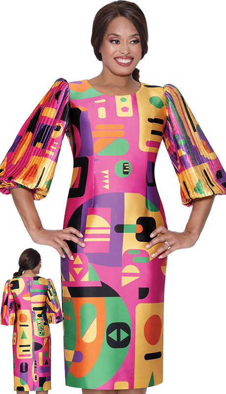 • 1pc Silk Look Womens Dress With 1/2 Length Puff Sleeves