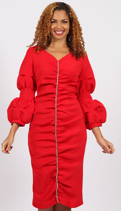 • 1pc Scuba Knit Womens Dress With Puff Sleeves