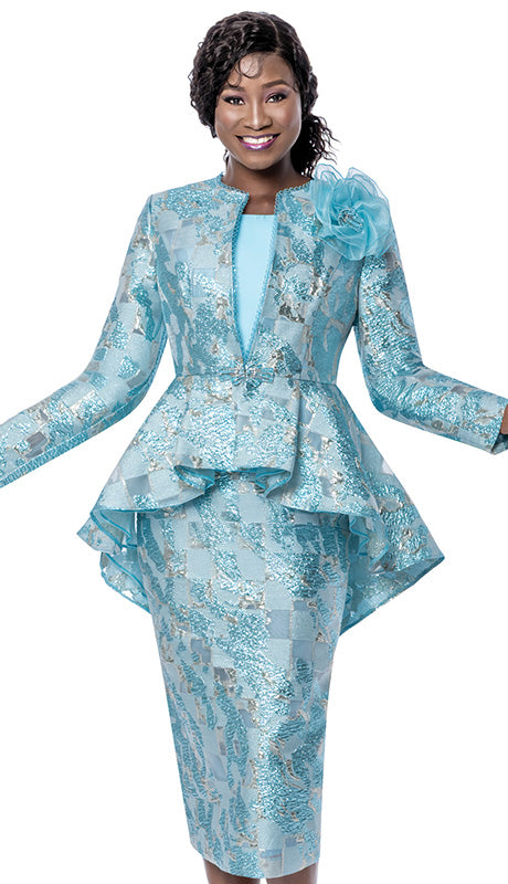 • 3pc Womens High Quality Brocade Fabric Skirt Suit Features Reflective Metallic Texture To Bring Visual Interest To The Unique Pattern