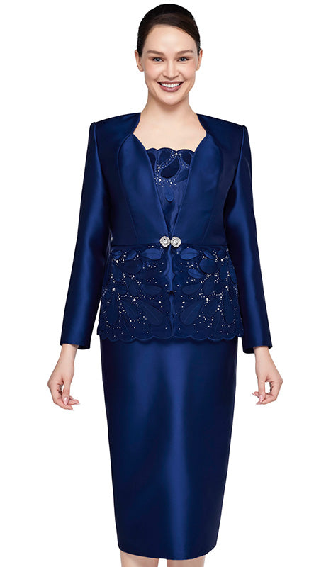 • Features Navy Blue Suit With Rhinestone Detailing and Stylish Foliage Design Jacket Featuring a Pedal Trim