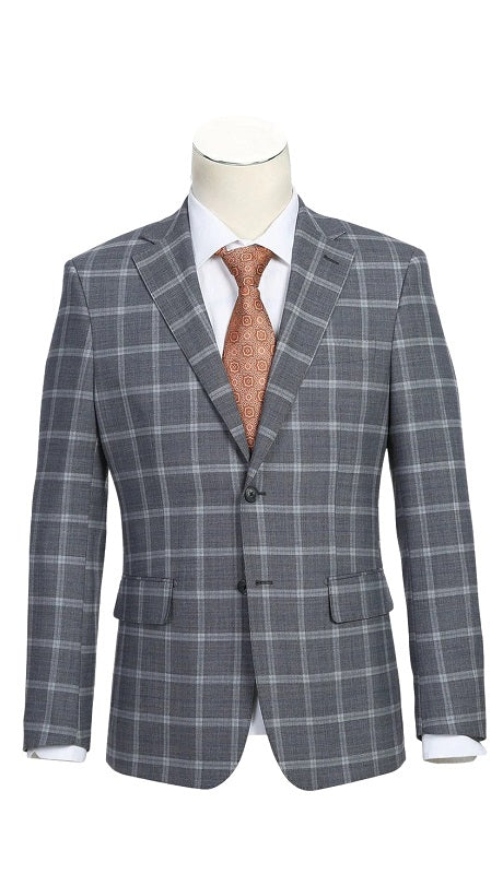 This men's slim fit grey and white checked suit jacket features a classic check, with notch lapels and a two button fastening - ideal to wear with the matching pants to create a unique men's suit for any occasion, or worn as a checked blazer with jeans or chinos.
