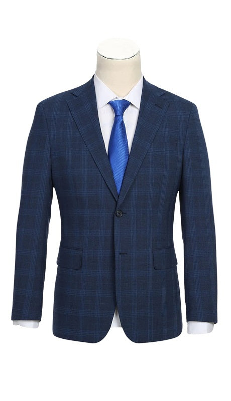 A stylish, airforce blue suit jacket, with a versatile colour scheme and a stretch wool blend fabric, in a slim fit.