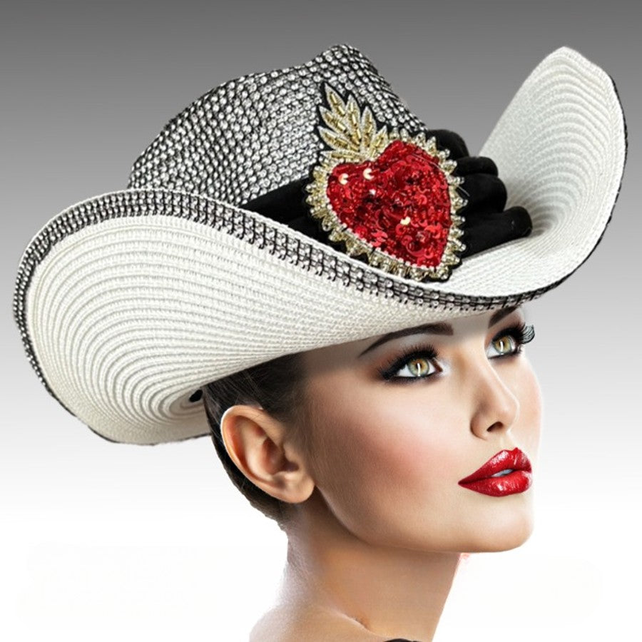 A Sparkling Red Heart Framed at Center of Hat Gleaming Bullion Radiates Passion