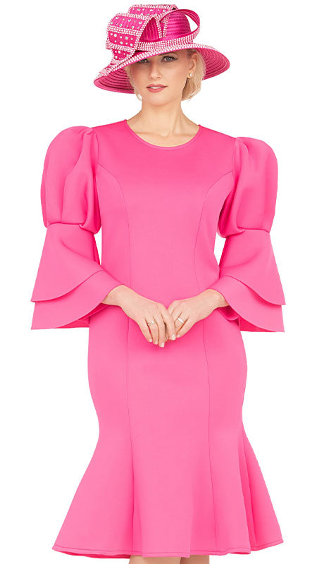 • 1pc Scuba Knit Womens Dress With Puffed Shoulders And Sleeves