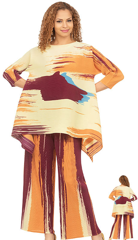 • 2pc Novelty Womens Pant Set With Painterly Design