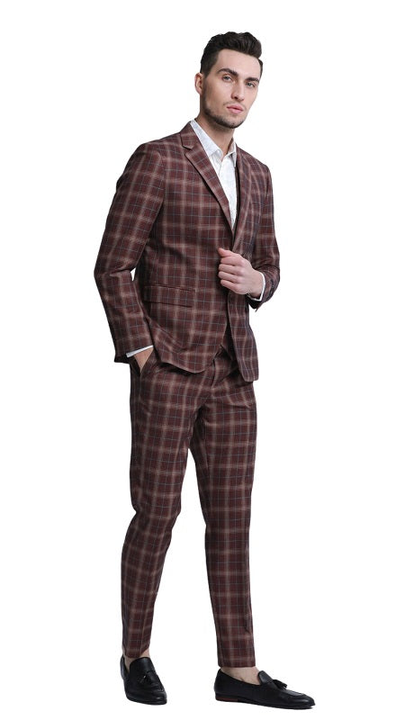 TAZZIO Mens Suit-M337SK-03-Burgundy